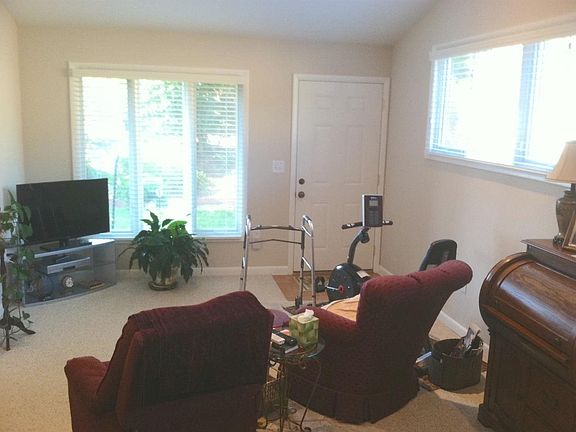 Great single family home with large living room, dining room and extra sun room/den with kitchen access. Even extra parking space for another vehicle. Private patio in front for relaxing conversations, and deep garage for workshop.