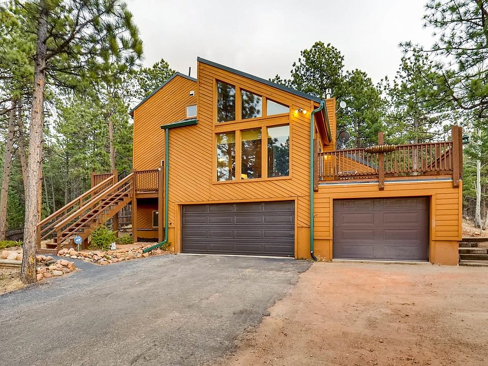 Welcome home! This gorgeous property is bright, airy and filled with character. Cozy up by one of the 3 fireplaces during cold winter nights or enjoy dinner on the deck in the surrounded by beautiful pine trees and mountain views. The kitchen is complete with all stainless steel appliances. Home is not short on beautiful touches such as skylights, wood beams, granite countertops and tile flooring in the kitchen and bathrooms. Conveniently located close enough to Highway 24 for quick access into Woodland Park and Colorado Springs while being far enough from it to not be bothered by the noise of traffic. Mountain living at it finest!