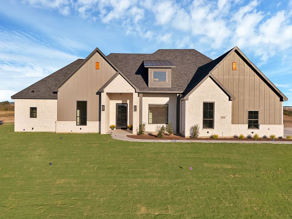 This stunning new construction home sits on 2 spacious acres within Brock ISD, offering the perfect blend of luxury, comfort, and privacy.This home offers 4 bedrooms, 3 full baths, an office, and sleek quartz countertops throughout with designer finishes. The open-concept layout is perfect for entertaining, and the primary suite features a spa-like ensuite with a free-standing soaking tub and separate shower.