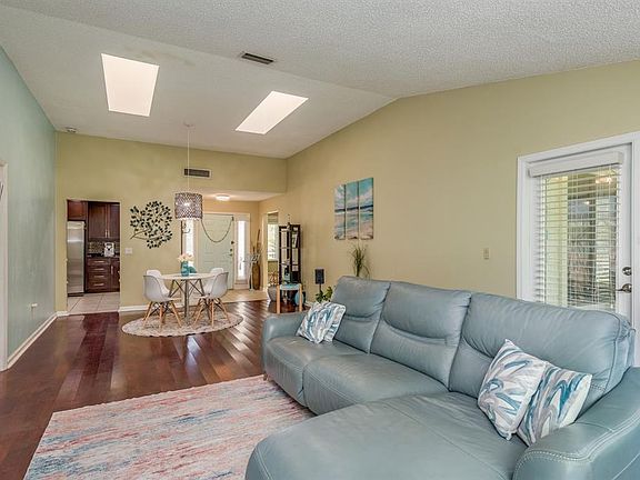 Welcome home to 1023 Lake Avoca Place, nestled in the coveted Pointe Alexis community where you can feel like you live in a resort every day. This three-bedroom, two-bathroom home with a two-car garage is beautifully updated. You will love the vaulted ceilings and all of the natural light in the living room. The kitchen has been updated to include granite countertops, modern cabinets and stainless-steel appliances. The primary bedroom is on one side of the home and connects to a beautiful, four-season sunroom. There is also a primary en-suite with dual vanities, tile shower and brand-new flooring. The primary walk-in closet has a built-in organizing system. The other two bedrooms are on the opposite side of the home, and they share an updated guest bathroom with a bathtub/shower combination. French doors from the living room lead to a covered, screened back porch. The backyard includes mature landscaping that provides privacy. At Pointe Alexis, the HOA manages your lawn care which gives you more time to enjoy the community pool, gym, clubhouse, tennis, pickleball and much more. The HOA fee includes the recreational amenities, grounds maintenance, water, sewer, trash removal, Internet and basic cable TV. Pointe Alexis is three and a half miles from the Sponge Docks and just two miles from Gulf beaches. Schedule your showing today to see this beautiful home and community.