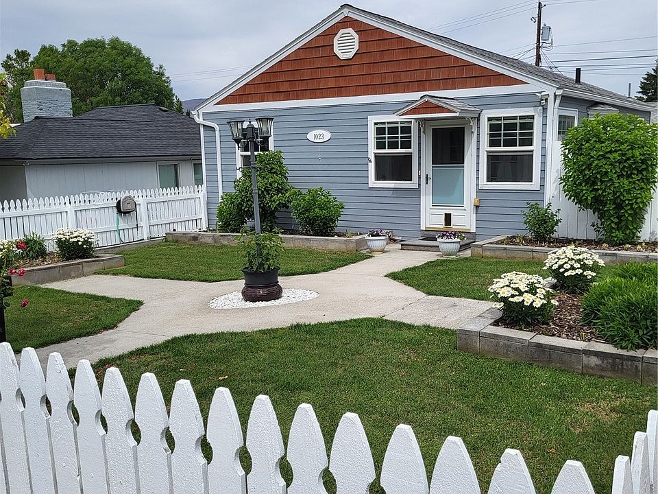 A white picket fence, a rose-covered arched trellis, a sunporch entry w/ French doors. This home has been completely updated since the original construction. Main level is open w/ living room, dining area & kitchen w/ a breakfast bar. Creative use of the floor plan, Owner is using one of the 2 main floor bedrooms as a dining room. Also on the main, a full bath w/ overhead heating, a utility/mudroom w/ storage & a full wall of pantry space. Lower level, a family room/4th BR & the 3rd BR w/non-legal window. A "detached" oversized 2 car garage built in 2007 w/ a breezeway connecting to the house. RV parking w/ 30 amp service; off-street parking. Wood cabinets & workbench stay. Finished attic storage. White picket fence paint completed 6-28.