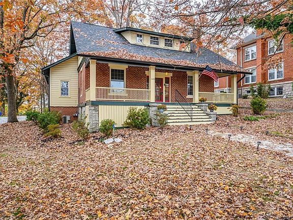 Perched proudly above Mount Airy’s Historic District, this 1900 Craftsman bungalow feels like stepping back in time with every modern comfort. From the large covered front porch overlooks historic downtown Mount Airy, and from the backyard, Pilot Mountain frames the skyline. Inside, original hardwood floors, 11-foot ceilings, and intricate moldings showcase timeless craftsmanship, while a newly renovated kitchen with tile backsplash, modern cabinetry, and stainless appliances brings fresh style. The main level features two bedrooms, a full bath, a formal dining room, and a bonus space. Upstairs offers two bedrooms, a full bath, and a cozy family room. Updated windows, central air, and walkability to downtown blend convenience with character. This home isn’t just beautiful — it’s a rare opportunity to live, work, and play in one of Mount Airy’s most beloved historic homes.