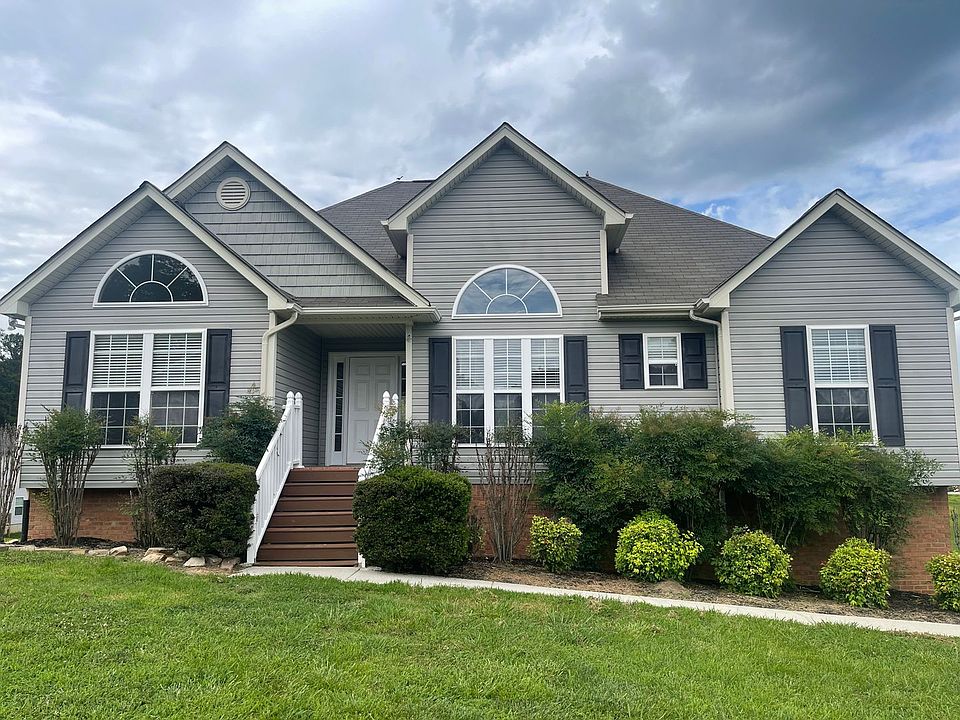 This 1 story floor plan features 3 bedrooms and 2 full baths over a full unfinished basement with plenty of room for storage. The home has new LVP flooring throughout the house along with a fresh coat of paint. The great room welcomes you with a gas log fireplace featuring a hand crafted mantle & TV nook. The primary suite and guest bedrooms are separated for added privacy. The primary suite has a trey ceiling, walk-in closet, jetted tub, separate shower & double vanities. The kitchen is large and has custom cabinets, Kenmore appliances (microwave, dishwasher, electric range, refrigerator), pantry & breakfast area. The guest bedrooms are good sized with lots of storage. The laundry room is located near the bedrooms for convenience. The exterior is virtually maintenance free with brick & vinyl siding.