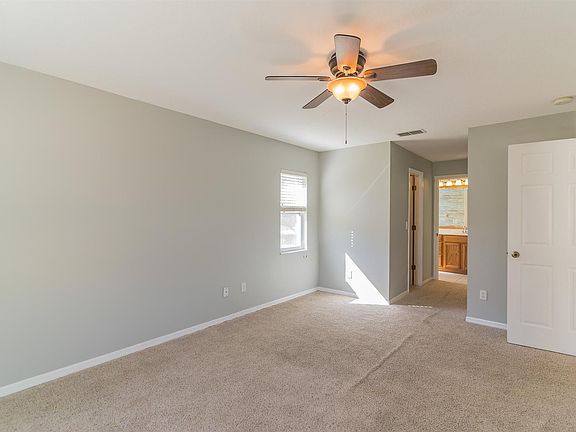 • Interior Features: Cathedral Ceiling(s), Ceiling Fans(s), High Ceiling(s), Living Room/Dining Room Combo, Master Bedroom Downstairs, Split Bedroom, Walk-In Closet(s), Open Floorplan, Solid Surface Counters, Solid Wood Cabinets, Eating Space In Kitchen, Thermostat
