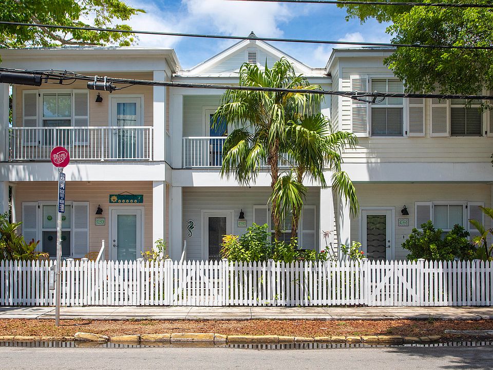 With the charm of Old Town Key West and the peace of mind of modern hurricane rated living, this townhome is a rare find. While conveniently located just one block from Duval Street, it is tucked back in the quiet, cozy 21 home enclave of Southernmost Cabanas. A few steps out your back door and you'll find yourself at your highly coveted private parking space in the covered garage. A few more steps and you're at the heated pool with gorgeous waterfall. Built in 2015, this home was made to be low maintenance. With impact doors and windows, you'll enjoy low insurances, utilities, and HOA fees. Monthly rentals are allowed at this property and its close proximity to Duval Street and Key West's most popular spots make for a desirable location.Walking up to the property you are greeted with a charming white picket fence and tropical front yard. As soon as you step inside the townhome you'll notice the high ceilings and modern feeling. Just a bit further, entering into the kitchen and living areas, you'll discover stainless steel appliances, an abundance of counter space, washer & dryer, wood-look tile floors, and plenty of natural light. Modern furnishings are throughout. Upstairs are two large bedrooms, primary and guest, both featuring king sized beds and their own en suite bathrooms. The guest bedroom, which is on the front of the home, has a private outdoor balcony overlooking Old Town. Stepping out to your spacious private back deck, you'll find space for your grill and comfortable outdoor furniture set. Enjoy listening to the wind through the palms and tropical birds singing as the island awakens each morning and winds down each evening. Just off your deck is a beautiful stone pathway weaving throughout the cabanas. Throughout the property you'll notice beautiful mature trees and landscaping which make the entire property feel like a tropical paradise. Being sold turnkey, this home is entirely furnished including dishes and housewares. Come live your island life.