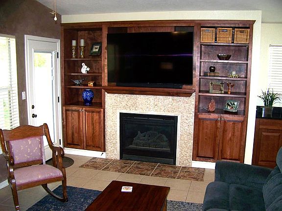 - Bookcases, Bathtub, Cathedral Ceiling(s), Kitchen Island, Multiple Living Areas, Main Level Primary, Soaking Tub, Separate Shower