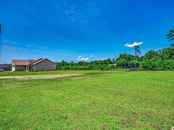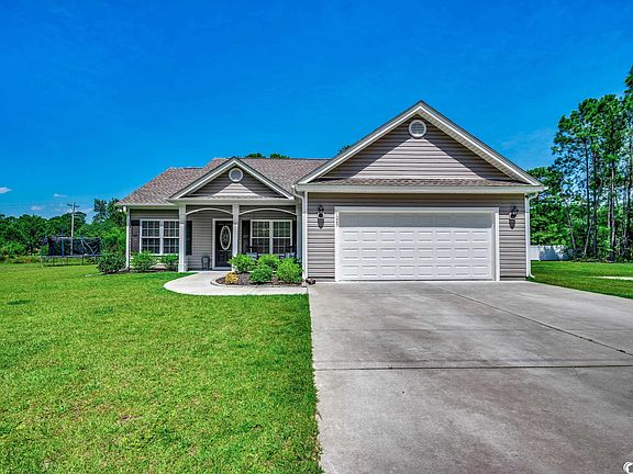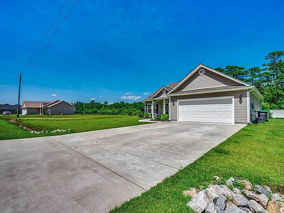 Great Country Living - Large lot, no HOA fee, basic CC&R’s (restrictions). Popular 3 bedroom 2 bath floor plan, relaxing front porch, rear screen porch and patio. Open floor plan with easy maintenance upgraded waterproof, wood-look luxury vinyl plank flooring in the living room, dining room, kitchen, baths, laundry room and carpet in the bedrooms. Living room has vaulted ceiling with ceiling fan, large kitchen has lots of solid wood cabinets with crown molding, breakfast counter, stainless steel appliances - microwave, smooth top stove, dishwasher, and pantry closet. Split bedrooms - Master suite has vaulted ceiling with ceiling fan, walk-in closet, double sink in raised height vanity and a 5' walk-in shower. Guest bedrooms and bath are on the opposite side of the house. 9' smooth ceilings, 30 year architectural roof shingles, nicely landscaped with irrigation system, painted garages with automatic door opener and pull down stairs to attic storage plus gutters, second driveway for easy access to the wide lot, privacy fence and berm on the back side of the house and a spacious attic, plenty of room to park boat and RV and to have a storage building. Close to downtown Loris, Hwy 701, within 30 minutes of Myrtle Beach.