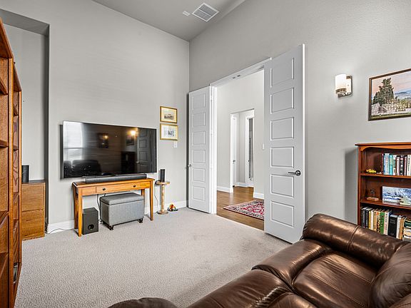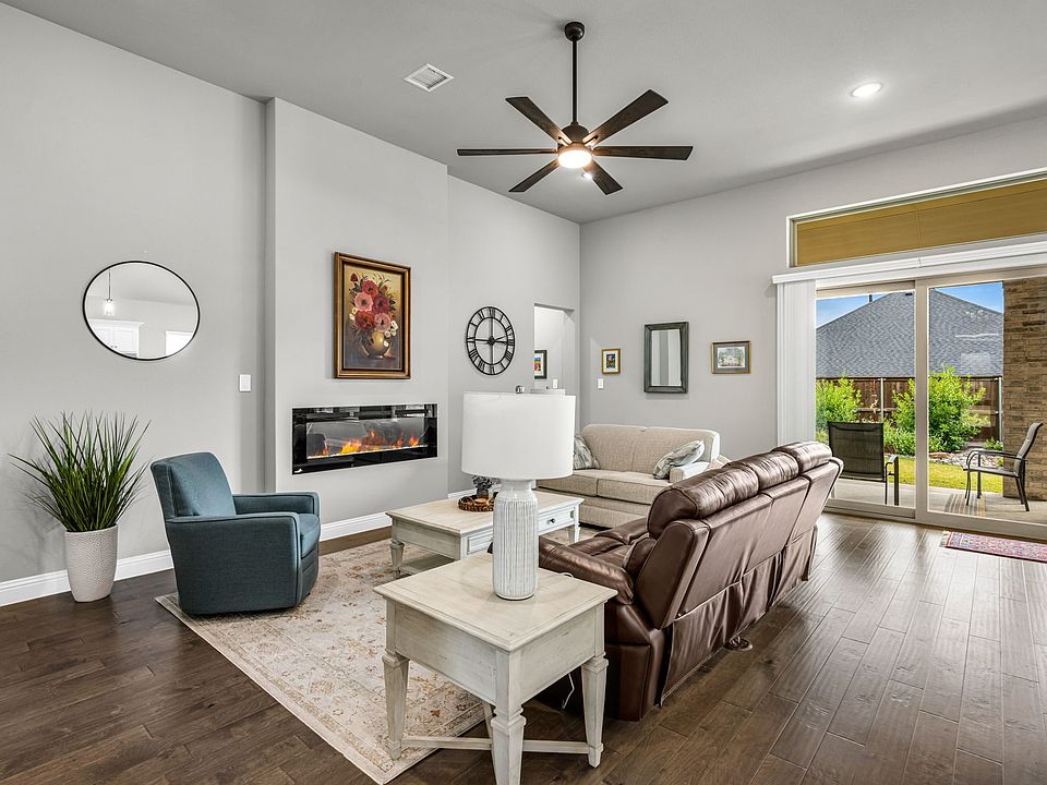 Join us for an open house this Saturday from 1-3pm. This beautifully designed Allure floorplan blends elegance and comfort with soaring 12-foot ceilings, abundant natural light, and a fresh, neutral palette. The open great room features a striking fireplace and sliding glass doors that lead to an extended patio and a private, resort-style backyard perfect for entertaining or quiet relaxation. The chef-inspired kitchen impresses with quartz counter tops, stainless-steel appliances, double ovens, a walk-in pantry, and a spacious island. The luxurious owner’s suite offers a vaulted ceiling, sitting area, and spa-style bath with an oversized walk-in shower. A convenient half bath and several deep storage closets, including three oversized hallway closets, add thoughtful functionality. The primary closet’s soaring ceiling accommodates a third hanging rod for extra storage. With its preferred location, bright open design, and meticulously landscaped backyard, this one-of-a-kind home offers the perfect blend of sophistication, style, and livability.