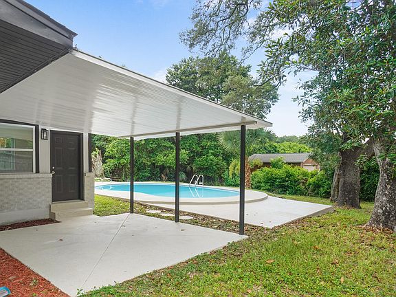 And just wait till you see her from behind! Baby got backyard, with mature trees and a glorious inground pool that just screams "You should definitely throw a party back here as soon as you get some friends."