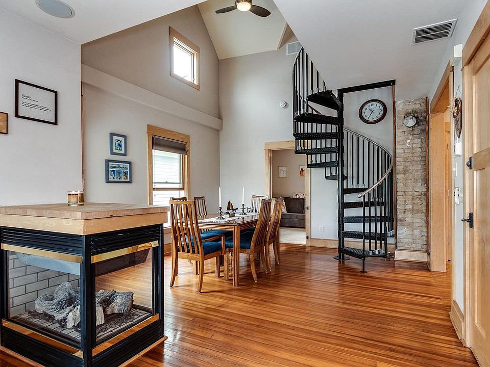 Experience the perfect blend of modern design and timeless character in this stunning 2-bed, 2-bath condo with office. Dramatic vaulted ceilings, original Douglas Fir floors, and a classic brick chimney showcase its architectural charm, while maple cabinetry, granite counters, and a gas fireplace add refined comfort. The lofted primary suite impresses with a marble-and-tile bath + custom California Closets. Condo has loads of in-unit attic storage. Water Heater+Water Softener-2021.Enjoy a private garage, basement storage, and an unbeatable Willy Street location just steps from shops, restaurants, markets, lakes, and downtown.