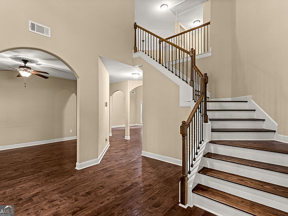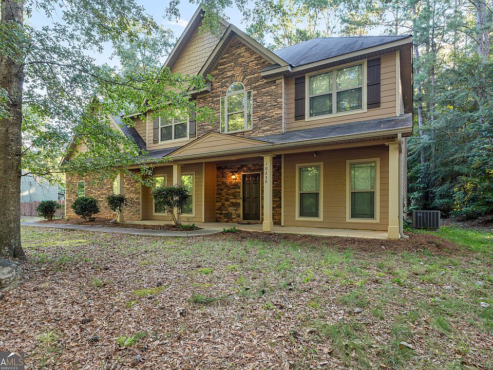 The perfect mixture of quiet country living and convenience! 5 bed, 3 full bath home situated on a 1 acre lot, 10 minutes from Bradley Park Dr. Two story foyer opens into massive open living area and kitchen. Kitchen features breakfast bar and island, tons of cabinet and counter space, double door pantry, and views into both living room and backyard. First floor also features a bedroom, one full bathroom, den area perfect for an office, a separate dining room, and laundry room. Upstairs, a HUGE master suite with dual walk in closets, bathroom with separate tub/shower, and double vanity. Another 3 spacious bedrooms and one full hall bath upstairs. Outside, a covered back patio and a massive backyard. Off patio, a flat yard area perfect hanging out, and tons of additional yard space heading up the lot. Two-car garage. Zoned for Double Churches Elementary and Middle, and Northside High School. Need space, privacy, and convenience? This home has it all!