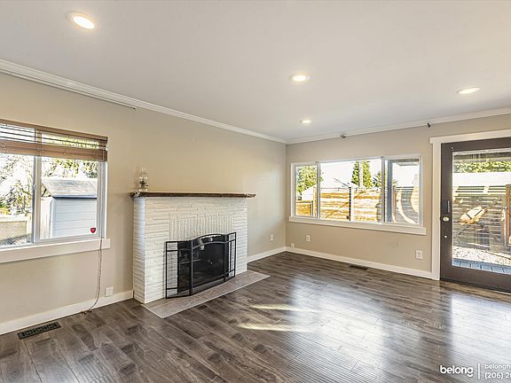 Enjoy spacious living in this 2-bedroom, 1-bathroom single-family home offering 1,550 square feet of thoughtfully designed interiors. The open floor plan centers around a charming fireplace, creating a cozy ambiance in the living room. The kitchen combines style and functionality, featuring a center island with bar seating, stainless steel appliancesincluding a side-by-side fridge, a 5-burner electric range, a microwave, and a vented hoodplus crisp white shaker cabinetry and a garden window perfect for cultivating fresh herbs. The primary bedroom includes a built-in closet and opens to the yard through elegant French doors, offering easy access to outdoor relaxation. Laundry is made convenient with a dedicated closet equipped with a stacked washer and dryer. Situated in the White Center area of Seattle, this home places you within a short drive of downtown Seattle (just 10 minutes away) and the airport (about 15 minutes). The neighborhood provides a perfect balance of urban and suburban living, with access to local amenities, reputable schools, diverse shopping, and reliable transportation options. *A fee of $300 per month will be charged on top of rent to cover utilities. *This home can accommodate 1 small pet (max 20 lbs) only. Please reach out if you have any questions! *Our homes come as-is with all essentials in working order. Want upgrades? Request it through the Belong app, and our trusted pros will take care of the rest! *Fireplace is for decorative use only and cannot be used without consent from Belong.