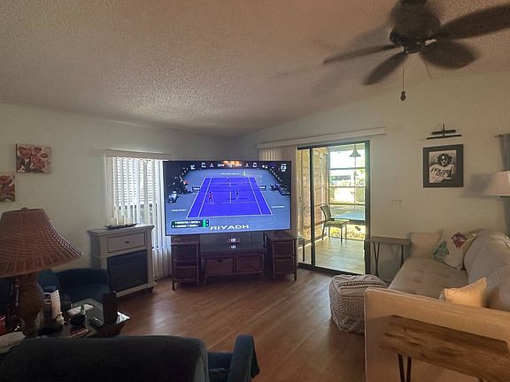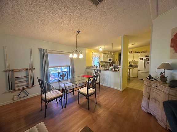 Tucked away and nestled among the trees, this well-kept manufactured home offers exceptional privacy and a serene setting. Inside, you'll find a comfortable layout featuring 2 bedrooms and 2 updated bathrooms, plus updated flooring throughout. The home is furnished for an easy move, and the vaulted, enclosed lanai serves as a perfect year-round retreat. Complete with a 1-1/2 car garage, this charming property on leased land is a peaceful haven away from the hustle and bustle.