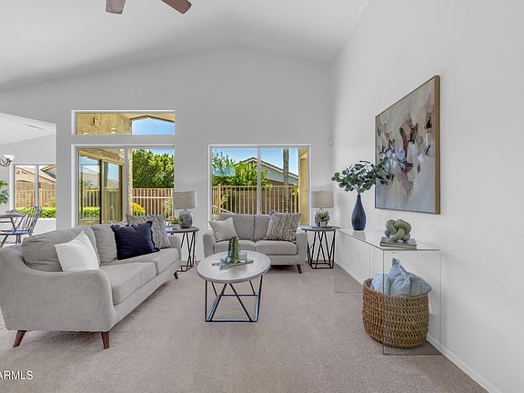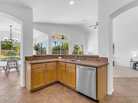 Beautifully UPGRADED single level home featuring a desirable split floor plan. This 3 bedroom, 2 bath home also includes a versatile den/office with elegant glass French doors. Enjoy the fresh look of NEW interior paint, NEW carpet, and NEWER appliances. Additional features include an expanded garage with built in cabinets. Step outside to your private backyard retreat with a covered patio and a sparkling HEATED PebbleTec pool, perfect for year round enjoyment. With plenty of space for family and friends, this home is ideal for both relaxing and entertaining. Conveniently located close to shopping, dining, the 202 and 60 freeways, with endless recreation nearby such as hiking at Usery, San Tan, and Lost Dutchman parks, plus golf just half a mile away with seven additional courses close by