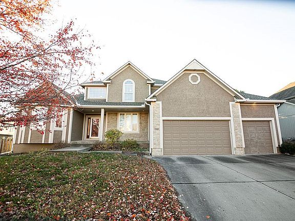 Discover your dream home in this stunning 1.5-story residence in a quiet cul-de-sac in Lenexa. This open floor plan includes five spacious bedrooms and four and a half bathrooms. The main floor and upstairs feature fresh paint and new carpet throughout. The kitchen boasts an island, pantry, and beautiful granite countertops, seamlessly connecting to the cozy hearth room and breakfast nook. Enjoy formal dining for special occasions. The master suite offers plantation shutters, vaulted ceilings, a walk-in closet, and a luxurious bathroom with a whirlpool tub and separate shower. The finished basement is perfect for entertaining, featuring a recreation room with a wet bar, separate office, cozy bedroom, and full bathroom. With surround sound throughout, gatherings will be a delight. Relax in the fenced backyard with a spacious deck. Don’t miss out on this perfect blend of comfort and luxury!