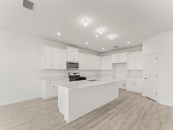 The Biscayne Bay is a 2,750 sq. ft. 1-story home that offers 4 bedrooms, 2.5 baths and a 2-car garage. This thoughtfully designed gem greets you with peek a boo windows as you approach the font door and the welcoming foyer greets you with the flex room and powder room just off to the side. The spacious kitchen offers generous cabinet space and countertops with an island breakfast bar. The kitchen overlooks the Great Room and dining area. A sliding glass door in the Great Room leads to the covered lanai. The three secondary bedrooms share a hall bath with double sinks along with the laundry room conveniently located nearby. The owner's suite is a relaxing retreat with a private bath and dual walk-in closets.