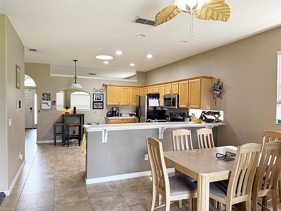 Beautifully maintained home on one of the best lots in Andover Lakes! Featuring ceramic tile throughout, stainless appliances, open and airy floorplan, newly fully upgraded bathrooms, large screened lanai, and no rear neighbors! Did you see that view?? Peace and tranquility right out your back door to enjoy the Florida sunshine every day of the year! Topping off this move-in ready home is a whole house solar panel system significantly reducing the energy costs and carbon footprint on the community! Andover Point is zoned for some of the best rated schools (all A and B rated), and includes a fun shaded playground area and large green space with benches and picnic tables. This place truly has it all! Make your appointment today!