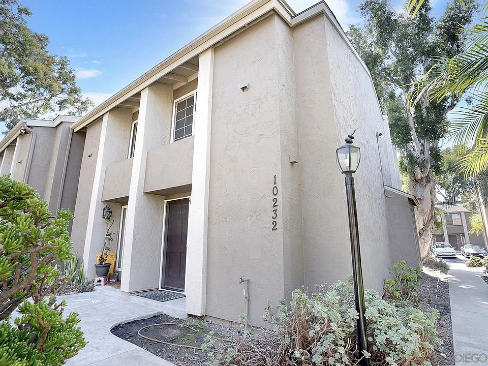 LOCATION! LOCATION! LOCATION! Experience elevated living in this 2 bedroom/ 1.5 bathroom beautifully upgraded end-unit townhome, perfectly situated in the desirable Windsor Park community in Mira Mesa. Upon entering, you’ll be welcomed by a bright, open-concept floor plan where the living room, dining area, and kitchen blend seamlessly—ideal for both everyday living and entertaining. Open the patio doors from the living room to invite refreshing breezes and create a perfect indoor-outdoor ambiance. The kitchen offers ample cabinet and counter space, all new stainless steel appliances, and a convenient eat-at counter—perfect for your culinary endeavors. The living room has been upgraded with new luxury vinyl plank flooring and new A/C unit. The primary bedroom includes two spacious closets and a private balcony for your personal retreat with so much natural light. With two designated parking spaces, parking is effortless. Residents of Windsor Park enjoy access to a sparkling pool and a well-equipped fitness center. You’ll also find Mira Mesa’s vibrant amenities within walking distance, with easy freeway access making all of San Diego's attractions just a short drive away. LOW HOA!!!!!