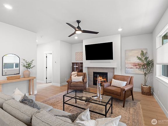 Versatile bonus loftHigh ceilingsCustom blindsBeautiful laminate flooringNew stainless steel appliancesQuartz countertops