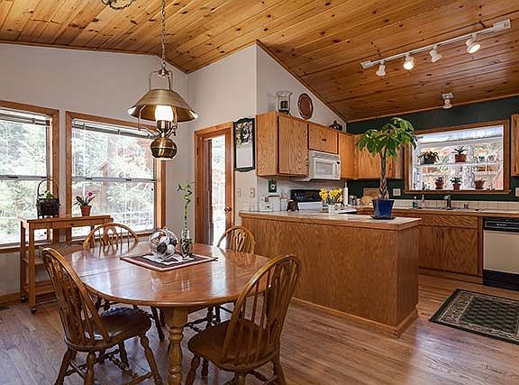 Exceptional single story living in this very well maintained home on a private cul-de-sac. 4 bedrooms, 2 baths and 2-car garage. Custom rock hearth with woodstove, vaulted pine ceilings, oak floors in the kitchen, dining, living and baths. Completely fenced and landscaped yard.