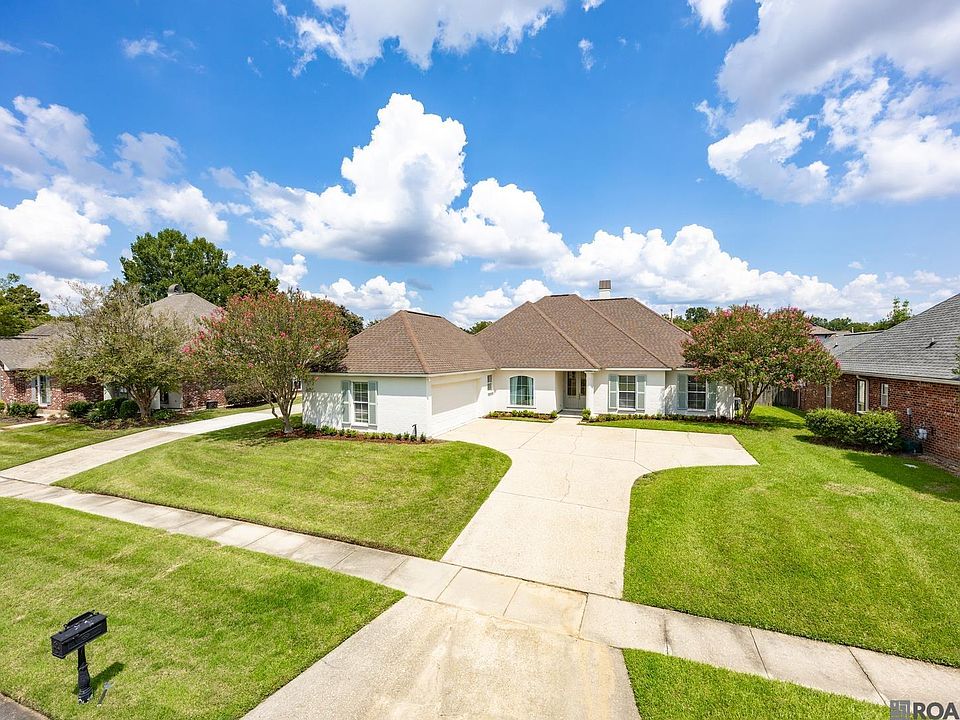 4 bedroom and 2.5 bathroom home conveniently located in the newly incorporated City of St. George, Louisiana! Near I-10 and BR General, this move-in ready home in the highly sought after Bluebonnet Terrace Subdivision offers easy access to shopping, dining, and commuting. Situated in a neighborhood that features a community park, this property combines comfort and convenience in one. Step inside to a spacious open living area with wood flooring that overlooks the fully fenced backyard. The kitchen features granite countertops, an island, breakfast area, computer nook, pantry, and ample cabinetry. The primary suite includes a walk-in closet and en-suite bath complete with dual vanities, a separate tiled shower, and a jetted tub. Enjoy outdoor living year-round under the covered patio in the expansive backyard, ideal for gatherings or quiet evenings at home. New windows and fresh paint throughout! On the St. George school bus route.