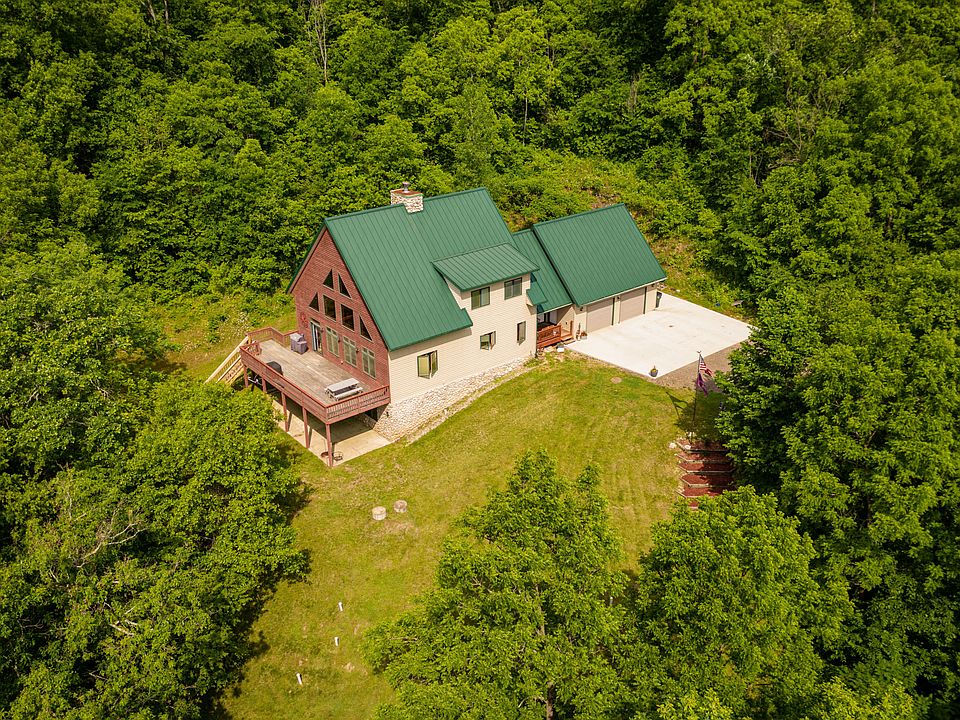 Apine-style log cabin home tucked away on 13+/- acres of Driftless Area paradise! Kickapoo River runs through property making it perfect for fishing, kayaking, conaeing and hunting! Meticulously cared for with brand new hardwood floors on main level, newer appliances and vanity bathroom tops. Master and laundry both on main level. Huge kitchen, beautiful stone fireplace, outstanding vaulted ceiling bringing in heavenly natural light! Multiple bedrooms on upper levels including a loft! New flooring with in-floor heat on lower level with wet bar great for entertaining. Plenty of storage and geothermal heat. Views to die for from deck. Make this your personal heaven today!