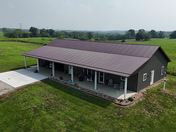 Welcome to your dream countryside retreat at 10236 225th St. in Moulton, Iowa! Nestled on 6.17 acres of picturesque Davis County land, this exceptional property combines rustic charm with modern luxury, making it a haven for nature lovers and comfort seekers alike. The primary residence boasts three generously sized bedrooms and a beautifully appointed full bathroom. Enter a world of custom craftsmanship with Amish-built cabinets topped with elegant granite surfaces, a Travertine stone backsplash, and a spacious pantry for all your culinary needs. The open floor plan is accentuated by luxurious LVP flooring, a cozy gas fireplace, and custom built-in bookcases, all adorned with 2" faux blinds for a touch of elegance. A large, welcoming front porch offers serene views, perfect for enjoying your morning coffee. The home also features an oversized, fully insulated garage with heating and air conditioning, concrete storm room, and easy-to-set-up boiler with in-floor heating for year-round comfort. For guests or extended family, the delightful guest house provides two charming bedrooms and a full bath, sharing the main home's sophisticated finishes and thoughtful design touches. Outdoor enthusiasts will marvel at the property's 40x64 pole barn, complete with a 14x40 custom man cave that offers mini split heating and air, reclaimed barnwood walls, and every amenity an avid hunter could desire, from the gun storage room to the fully electric layout.