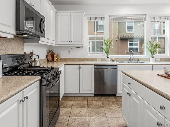 Beautiful, assumable, end-unit townhome in the gated Morningside community of Santee! This light-filled three-story home offers a bright and open floor plan with luxury vinyl plank flooring and a spacious kitchen featuring a large center island—perfect for cooking and entertaining. Enjoy your own private balcony, ideal for relaxing outdoors. The thoughtfully designed layout includes an attached two-car garage, laundry, and entry on the ground floor; an open-concept living area with a half bath on the second level; and two generously sized bedrooms on the top floor, each with its own full bathroom. The primary suite offers comfort and privacy with ample closet space. Additional features include a highly sought-after double-sided garage with separate entrances and extra storage. The Morningside community offers resort-style amenities including a pool, spa, BBQ area, and playground. Conveniently located close to shopping, schools, and with easy freeway access—plus, the complex is FHA and VA approved. This is a home you won’t want to miss!