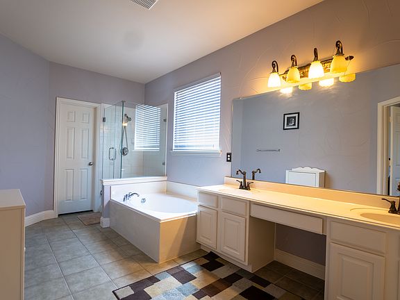 Well-maintained two-story with 4 beds, 2.5 baths, and a spacious open layout. Features include tile flooring in entry, kitchen, and baths, a large family room with fireplace, and a gourmet kitchen with Corian countertops, island, and 42" cabinets. Primary suite offers a garden tub, double sinks, separate shower, and walk-in closet. Fresh paint and a private backyard with patio. Great location move-in ready!