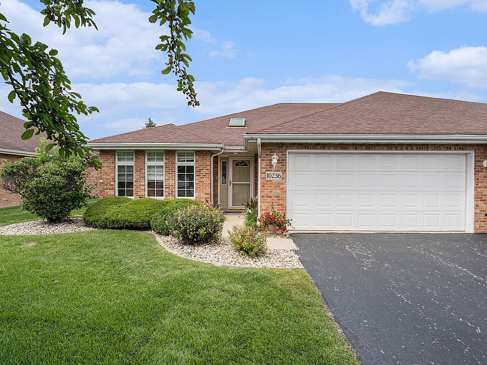 This move-in-ready ranch offers the ultimate in maintenance-free living. Step inside to find a spacious, open-concept layout where the living room, kitchen, and dining area flow seamlessly for effortless entertaining. The kitchen features an inviting counter-height buffet, perfect for casual meals or serving guests. A tranquil primary bedroom suite awaits, complete with a walk-in closet and a walk-in shower for a spa-like feel. Both bathrooms have been elegantly updated with new quartz vanity tops, and the guest bath features new tile flooring. Enjoy peaceful mornings or evenings with your flowers on the private backyard patio. With a brand new water heater in 2024 and freshly painted neutral interiors, this home is ready for you to enjoy. Located in a quiet neighborhood, you're still just a short, walkable distance from local shops and restaurants.