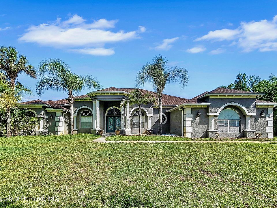 COME FALL IN LOVE WITH THIS WATERFRONT BEAUTY 4/3/3 LOCATED IN WEEKI WACHEE! This beautiful spacious updated home is sitting on just over an acre and on a natural fed spring. Home has a Mediterranean feel with all the arches and columns. This floor plan has tons of options for offices, work out room or anything you can think of. It has so many upgrades from the floors to the ceiling. Features a beautiful stone wrapped electric fireplace at entry way, Nice updated fixtures, Wood looking Ceramic tile floors 5 inch baseboard, Carpet in the bedrooms, Plantation shutters in all Front windows, all rear facing windows/sliders are tinted. Master Bedroom has a beautiful trey ceiling. Large sitting area that leads out to the lanai. Huge master bath with dual vanity and dual shower head. Large walk in closet, Salt Water pool. Large 3 car garage. New roof was just installed in October 2022. Also has a hookup for camper/travel trailer. Please just come see for yourself, you will not be disappointed.