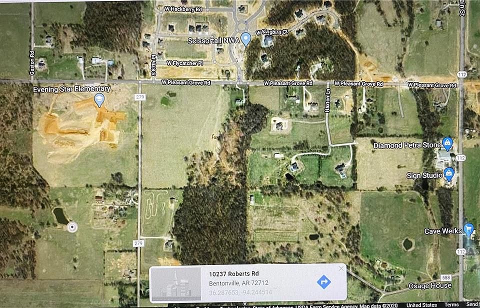 Great area for development, Just south of the new Bentonville school that was built on west Pleasant 1/2 mile west of hwy 112 between Cave Springs and Bentonville. Property has 570' of frontage on Roberts Road.