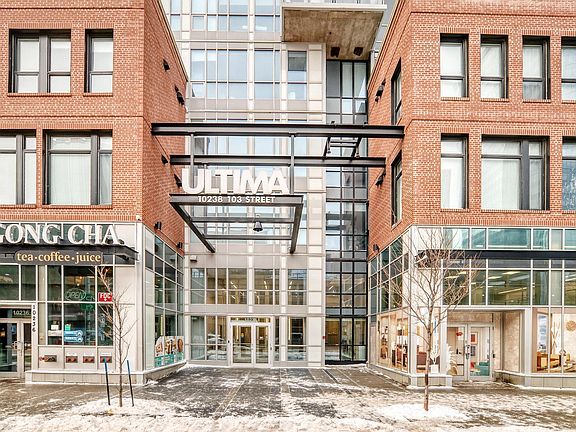 Experience premium downtown living in this 9th-floor 2 bedroom, 2 bathroom condo in the sought-after Ultima Tower. Enjoy stunning views of Rogers Place and breathtaking sunsets from this beautifully maintained home in the heart of the Ice District. This unit offers one of the largest kitchen layouts in the building, featuring granite countertops, stainless steel appliances, and an oversized island with seating for four, perfect for entertaining. The open-concept layout is filled with natural light and enhanced by hardwood flooring, upgraded carpeting, granite throughout, and in-suite laundry. Both bedrooms capture impressive views, including a spacious primary with a walk-in closet and full ensuite. The building offers excellent amenities including a fitness centre, hot tub, and expansive outdoor patio. Low condo fees make this an ideal opportunity for professionals, students, and investors alike. Steps to Rogers Place, restaurants, grocery stores, farmers’ markets, and all downtown conveniences.