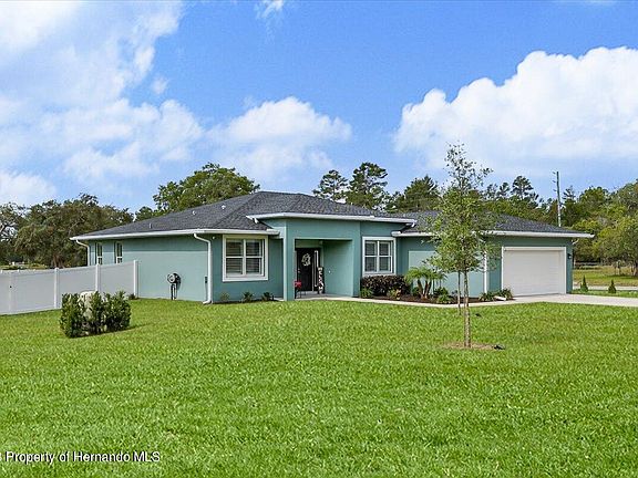 WHY BUILD? Upper End Finishes on this 4 Bedroom 2021 Gorgeous Place that you can Call Home. .87 of An Acre with a Huge Vinyl Fenced Backyard.. Currently a Clean Pallet for whatever you would like.. Pool, Gazebo, Summer Kitchen, Playground, Garden, Rock Waterfall.. So many options.. This part of Royal Highlands is the most sought out area as it is right off of SR50 & is Near Restaurants, Movie Theater, Shopping & the Famous Weeki Wachee River. 2247 sf of Living Area with 2951 sf Under Roof. Open Floor Plan.. Walk through the Front Entry to the Foyer with a Formal Dining Area to the Right and a Living / Game Room to the Left.. Further In is the Family Room, Breakfast Nook & Kitchen. Master Suite is to the Left & Bedroom 2,3 & 4 to the Right.. split for privacy. Crown Molding, Plantation Shutters, Upgraded Lights & Fixtures + Tile Plank Flooring. Kitchen Boasts Breakfast Bar, GRANITE Counters, Under-mounted Stainless Steel Sink, Shaker Wood White Cabinets with Tubular handles that have the Soft Close Feature, Pot Drawers, Frigidaire Stainless Steel Appliances + Pantry. Master Suite offers His & Her Walk in Closets Soaking Garden Tub, Walk in Shower, 2 Grey Cabinet Vanities with Granite Counters & Square Under-Mounted Sinks. Guest Bathroom with Tub/Shower Combo + Grey Cabinet & Granite.. Plus 1/2 Bathroom. Inside Laundry Room.. Covered Back Porch...