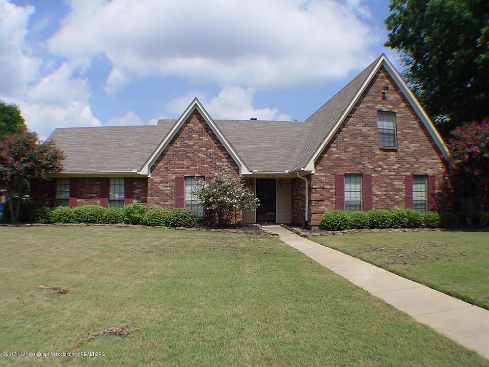 Spacious 5BR/3BA home on .40 acre corner lot in Olive Branch. 3BR / 2BA down and 2BR / 1BA up. Vaulted great room w/wood-burning fireplace. Spacious formal dining room could easily be converted to a home office if needed. Nice-sized kitchen w/bayed eat-in area. Master suite sports a large bedroom and a salon master bath with dual walk-in closets, dual sinks, walk-in shower and jetted tub. Upstairs are two oversized bedrooms . . . one would make a great bonus room! The beautifully landscaped lot has stone-bordered flower beds with irrigation. Located on a dead-end street in an established neighborhood. Back yard would be a perfect place for a pool. Close to restaurants, shopping, and medical facilities. Check it out today!