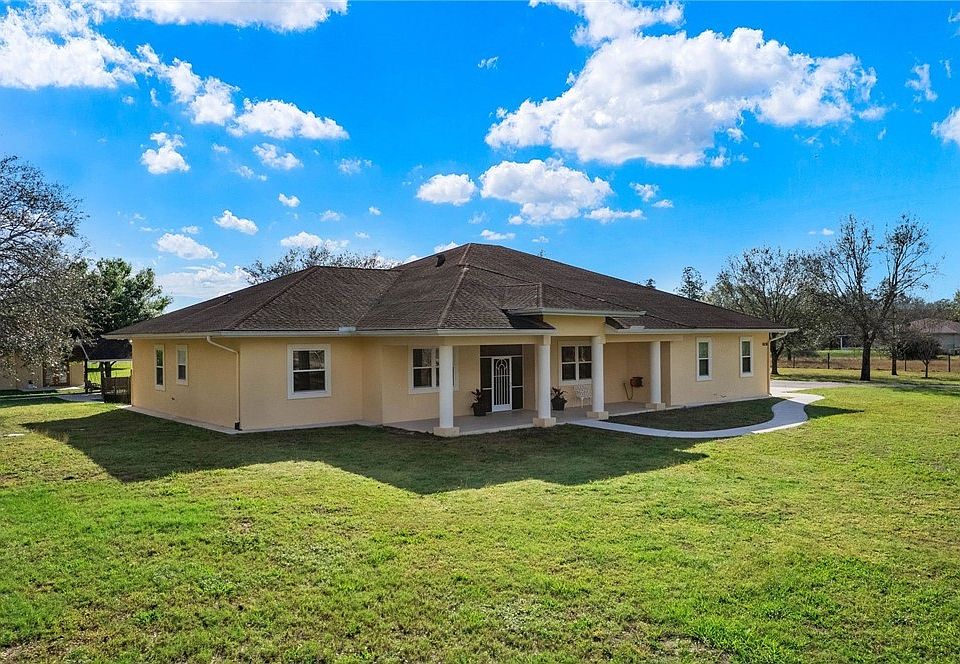 This lovely estate is perfectly designed on a sprawling 5-acre parcel of scenic countryside, beautifully landscaped with mature oaks, palms and crape myrtles. The main residence exudes timeless elegance, boasting spacious interiors and upscale finishes throughout. Adjacent, the family can enjoy gathering on their covered BBQ area with swings for everyone. The estate boosts a charming guest cottage which offers privacy and comfort for visitors, while a versatile shop and office space cater to various lifestyle or business needs. Ideal for equestrian enthusiasts, the property is fenced with three access gates, providing an idyllic setting for horses to roam and thrive. Come enjoy the serene landscape on your spacious lanai perfect for entertaining. Generator with underground tank for main residence. View the 3D Virtual Tour, then come and experience this home for yourself.
