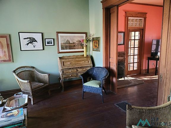 Located in a Las Vegas neighborhood with many beautiful historic homes, this lovely Victorian exudes the character and warmth of turn-of-the-century architecture. Built in 1910, when Las Vegas was a thriving cultural and business hub—prior to New Mexico’s statehood—this home sits on three city lots (0.24 acre) and blends rich historic detail with thoughtful updates. Step inside to a classic Victorian double parlor, where the living and dining rooms are elegantly separated by tall original pocket doors. You'll find high ceilings, a large bay window, original hardwood floors, and untouched wood trim, all contributing to the home’s airy and light-filled charm. The formal dining room and spacious, open kitchen flow directly onto a wraparound wooden deck—perfect for brunches, quiet afternoons, or evening gatherings under the stars. A stone and frame addition built in 1980 includes a full bathroom and separate entrance, offering flexible options for use—a primary or guest suite, art studio, or potential rental/Airbnb space. A finished converted attic provides even more functionality, ideal for a cozy bedroom, home office, or creative retreat, complete with a sweet reading nook. The fully fenced backyard is ideal for gardening, entertaining, or letting pets roam. It features a rainwater catchment cistern, chicken coops, and a towering 12-foot lilac hedge that adds privacy and seasonal fragrance and color. In the front yard, a stone bench set among sage creates a peaceful garden nook, just waiting for your creative touch—or a pergola. An open garage and storage shed provide additional storage and workspace. The home has seen major repairs and recent updates, including: roof on addition, sewer line, hot water heater, plumbing lines, flooring, new washer/dryer and dishwasher, fencing, chandeliers, ceiling fans, and fresh interior/exterior paint. This lovingly maintained property now awaits its next chapter—a historical labor of love, ready for your final touches and customizations. All this just walking distance from the Carnegie Library, schools (including New Mexico Highlands University), shopping, and entertainment. Easy to show. Don't miss this rare opportunity to own a piece of Las Vegas history.