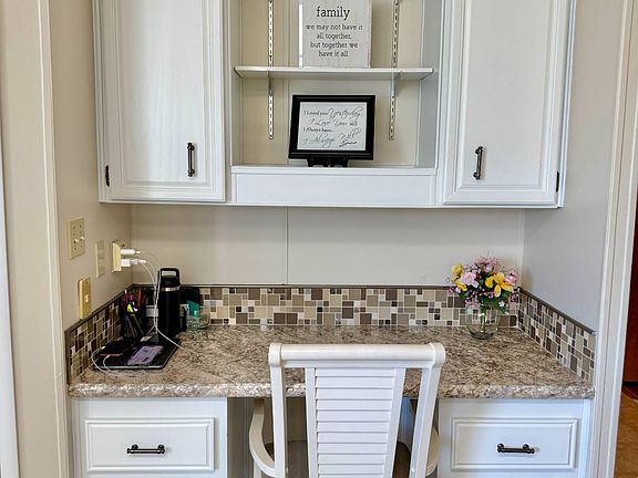 Dedicated desk areaOpen layoutInside laundryVaulted ceilingsSpacious pantryShingle roofAc unit