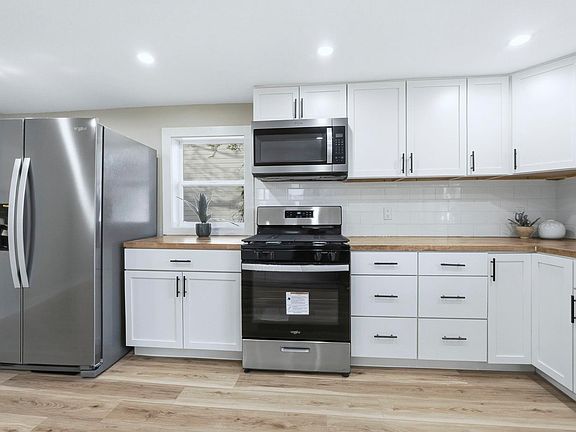 Welcome to this beautifully renovated home, where modern comfort meets timeless charm. From the moment you arrive, you’ll notice the freshly painted exterior and the landscaping that enhance the home’s curb appeal. Step inside to discover a completely remodeled interior featuring brand-new LVP flooring, fresh paint, and new carpet throughout. The stunning kitchen showcases butcher block countertops, stainless steel appliances, and a clean, modern design perfect for everyday living and entertaining. Both full bathrooms have been completely updated with stylish new tile and contemporary finishes. Relax in the living room featuring a new modern electric fireplace, adding both warmth and ambiance to the space. Additional upgrades include a brand-new furnace and AC unit, ensuring year-round comfort and efficiency. Every detail has been thoughtfully crafted this move-in ready home is truly like new and ready for its next owner to enjoy!