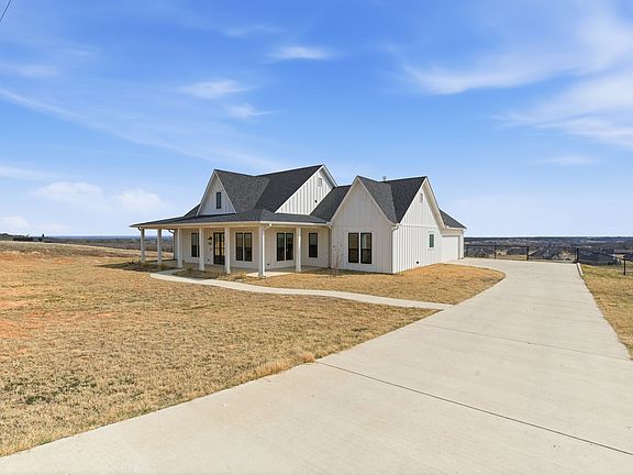Recently appraised at $518,000. Seller offering $5,000 concession to buyer. Situated on 1.124 acres with gorgeous hilltop views overlooking for miles and miles. Step inside this like-new, 2022 build, 2,115 sqft, offering 3 bedrooms, 2.5 bathrooms, plus an office or flex space. This open concept home boast an oversized living area with vaulted ceilings, custom wooden beams, and a gas floor-to-ceiling fireplace. The kitchen has plenty of cabinet space, under-cabinet lighting, and gorgeous quartz countertops, ready for hosting or family gatherings. This split floor plan offers the master bedroom with an en-suite bathroom. Double vanity areas with a large soaking tub, a massive walk-in closet, and a shower. The two large bedrooms offer plenty of natural lighting with oversized walk-in closets in each. This property has an oversized two-car garage with plenty of additional driveway parking space. With a half wrap-around front porch and extended back porch, this property is ideal for evenings or early morning relaxing, enjoying the country scenery it offers. The back porch is plumbed for a gas outdoor kitchen or grill. Being minutes away from Springtown, TX, this home is the perfect blend of exclusivity with the convenience of being just outside the city limits.