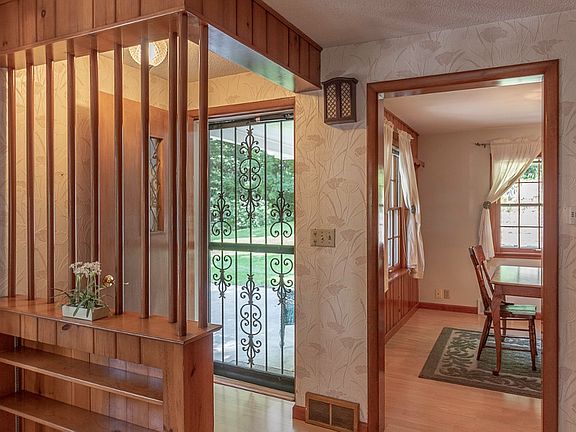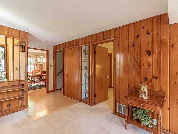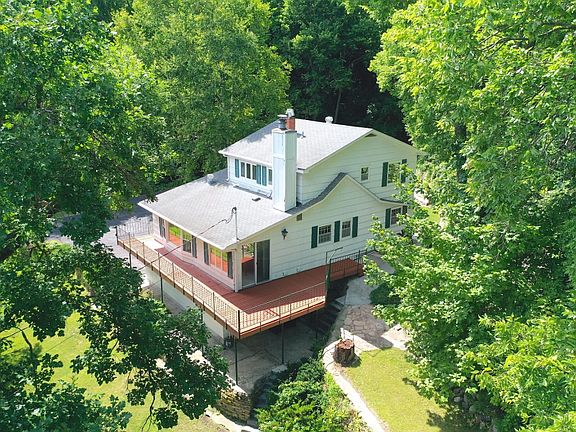 Welcome home to this wonderful home nestled among the trees! The front foyer opens up into the main floor living room with large windows to the back of the home. The living room also features a brick-faced wood burning fireplace, knotty pine walls, and sliding patio doors to the wraparound deck. Also on the main floor is an open concept casual dining room and kitchen featuring center work island, and ample white cabinetry.  There is one bedroom on this level as well as a pass-through 1/2 bathroom. Upstairs you will find 2 more bedrooms and an awesome bonus room as well as a 3/4 bathroom. The walk-out basement has been partially finished off with a 4th bedroom, 1/4 bathroom, laundry area, and great storage. Outside you will enjoy beautiful river valley views from the wraparound deck, as well as ample green space and lush greenery creating a ravine oasis!