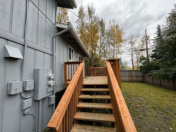 Convenient location less than 5 minutes from the grocery stores/base/highway. Upgraded 2 bedroom 1 bath unit in a duplex. Single car garage with a large fenced in back yard and deck. Move in ready!! Laundry room with washer and dryer included. Tenant pays electric and trash. Tenants are responsible for snow removal and lawn maintenance. Established, quiet, family friendly neighborhood on a corner lot, walking distance to a dog park and playgrounds. Apply now to schedule a showing before it's gone!! Tenants are responsible for electric and trash. Tenants are responsible for their own snow removal and lawn care. 2 car parking spots in the driveway as well as their single car garage. No smoking in the unit. Dogs on approval with no bread restrictions. No pet deposit required. Dogs smaller than 50lbs are an additional 50$ a month. Dogs 50lbs or more are an additional 100$ a month. Limit of 2 dogs. Owner is responsible for gas and water. Maintenance on site 24/7. Tenants must make 2x the amount of monthly rent in order to qualify.