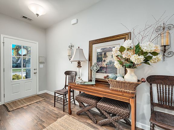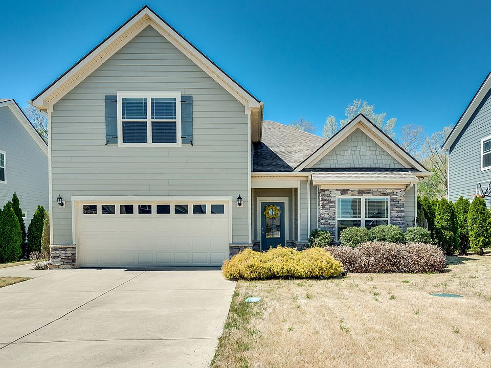 Pristine condition and loaded with upgrades this home sits on a premium lot that backs up to common area and woods! All bedrooms on the main level with a 4th bedroom (or could be used as a bonus room) and full bath over the garage. 4th bedroom has a large closet. Covered rear porch with decking overlooks a beautiful view. Mini magnolias provide privacy when in bloom. Hardwood flooring and carpet in bedrooms. Stacked stone gas log fireplace with tv hook ups. Iron spindles on banister. Counter height kitchen bar with granite and stainless steel appliances. Upgraded cabinets. Large pantry in laundry room. Refrigerator, washer and dryer can stay. Garage has a pedestrian entrance with sidewalk and custom cabinets that are negotiable. Cumberland Estates is close to schools. Walk in attic.