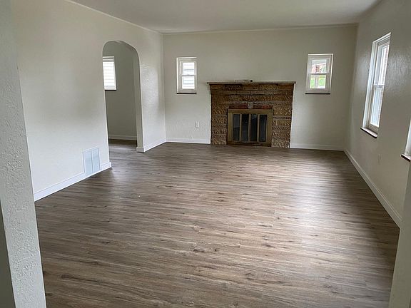 It features a bright, open layout with modern finishes, plenty of space to spread out, a covered back porch and backyard area, and a large driveway that fits multiple cars.