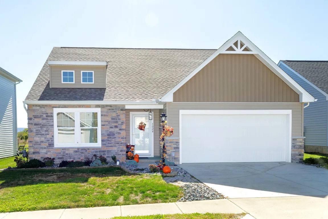 Quartz countertopsCharming pergola patioNatural lightGrand entrywayPrimary suiteSpacious islandBreathtaking mountain views