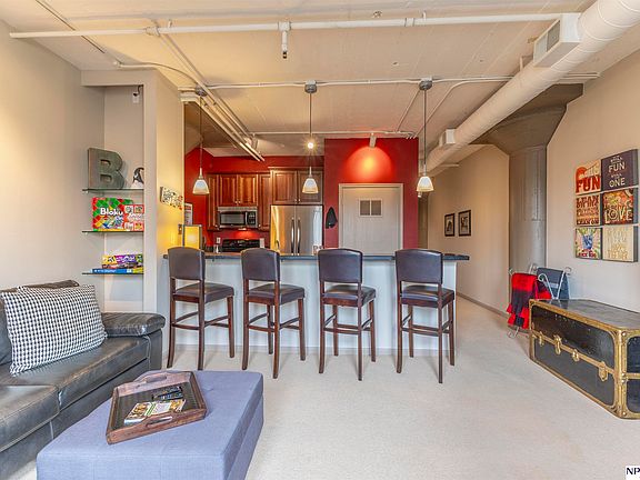 Welcome to urban living at Ford Lofts! This 1-bedroom, 1-bath condo is perfectly situated in the heart of downtown Omaha, placing you just steps away from dining in The Old Market or entertainment at Steelhouse, CHI Center or Charles Schwab Field. The west-facing unit offers stunning skyline views, with large windows that flood the space with natural light. Inside, you'll find a thoughtfully designed open layout perfect for time at home. Enjoy a host of desirable building amenities, including a community room, fully equipped fitness center, extra storage, and a rooftop deck with panoramic views of the Omaha skyline. One designated parking space is included for added convenience. Whether you're looking for your first home, a city retreat, or an investment opportunity, this condo delivers comfort, location, and lifestyle in one unbeatable package.