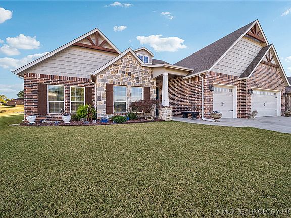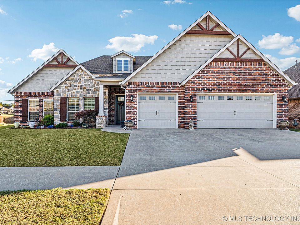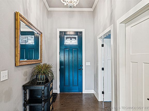Located on a quiet, well-kept street with quick access to Highway 75, Tulsa Hills, local parks, and Glenpool schools, this home offers a perfect blend of comfort, accessibility, and style. Whether you are searching for ADA accessibility or a bit more elbow room this house has both. This beautifully maintained 4-bedroom, 2.5-bath, 3-car garage 2018 home feels like a brand-new build! Inside you'll find an open-concept floor plan with ADA-compliant doorways and hallways (and zero steps) and a walk-in shower in the primary bath. There are high ceilings, designer lighting, neutral colors and stained concrete floors throughout the home. The kitchen features granite countertops with elegant veining, custom white cabinetry with top-lit glass panels, subway tile backsplash, a farmhouse sink, stainless steel appliances (the refrigerator stays), and pendant lighting. An energy-efficient HVAC and a fully fenced backyard with privacy fencing make this house feel like a retreat inside and out. This one is definitely a FOREVER HOME!