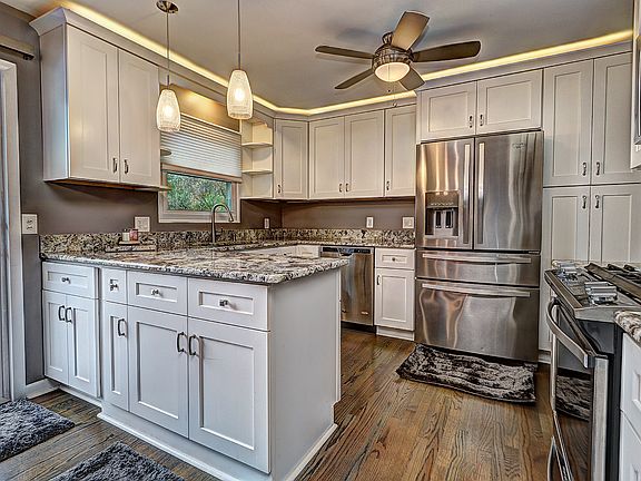 The beautiful, completely remodeled gourmet Kitchen is just one of the reasons you will fall in love with this ranch just down the street from Kelvin Grove grade school! The Kitchen was gutted and beautifully designed 6 years ago with granite countertops, stylish cabinetry with pull out drawers, new lighting including above cabinet uplighting, oak flooring, and stainless appliances! Paneled accent wall in the Living Room, hardwood flooring in both Bedrooms with ceiling fans and nice sized closets with built in shelving, and the main upstairs Bath has been updated! 6 panel doors! FULL Basement with finished 24' x 16' Family Room with recessed lighting, PLUS another finished 11' x 9' Room perfect for Office, Playroom, Exercise, Crafts, etc! The Basement also features 2 more unfinished Rooms with shelving adding so much extra storage, and there is another full updated Bath! AND the Basement Sauna and Deck Hot Tub purchased in 2018 will stay! The 5 year old shed stays, the garage refrigerator stays, the ring doorbell stays, the deck furniture stays, and some of the furniture in the home can be purchased. The Furnace and Central Air are only 6 years old, the windows and front door have been replaced, and the exterior painted. Deep attached garage with garage door opener and shelving! Make your appointment today!
