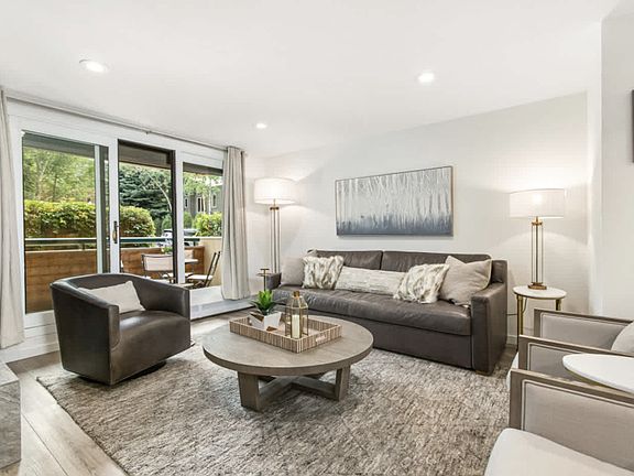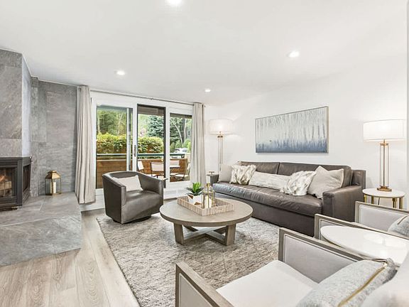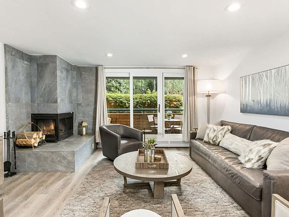 Relax on your private balcony enjoying the soothing sounds of the rushing river, or cozy up by the wood-burning fireplace after a long day of exploring the mountain. This newly renovated condo has left no detail overlooked, including heated kitchen and bathroom floors, a beautiful slate wood-burning fireplace, and a designer kitchen and island. Stay connected with high-speed Wi-Fi, perfect for streaming, working remotely, or keeping in touch with loved ones. Unwind and enjoy your favorite shows, movies, and sports events on the Xfinity cable Smart TVs. The gourmet kitchen features custom cabinets, quartz countertops, state-of-the-art appliances, and is well-appointed with everything you need to prepare a delicious home-cooked meal. The dining island offers seating for six, and there's a washer/dryer for your convenience. Access the secluded back patio overlooking the river with a dining table and gas grill.