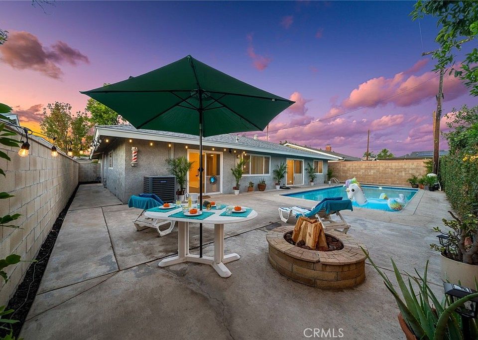 Welcome to Cambridge Estates. 1024 Tularosa, a 4-bedroom 2-bath with a pool, just 3 minutes from Old Towne or the 55 or 22 freeways! Great location! An extra-wide driveway leads to a detached 2-car garage. Gated entry through the double door leads into an open floor plan featuring a large living room, family room with brick fireplace, and an eating area. The entry has terrazzo stone floors, new life-proof vinyl wood textured floors, and new carpet in the bedrooms. The kitchen has quartz counters, Euro white cabinets with accent display doors, stainless steel appliances, including a dishwasher, a 5-burner built-in gas range with commercial-grade hood, and a full-size electric double oven, perfect for those holiday meals. separate laundry room. There are 4 bedrooms, mirrored wardrobe doors, ceiling fans, and 2" mini blinds that accent the rooms. The primary bedroom has its own bath with a neo-angle tile shower. The main bath has a tub/shower accented in tile. Central heating and air keep you comfortable all year long, and the best part is having a pool to have fun and a fire pit to dry off. A large patio area to enjoy with the summer BBQ. *Professional pictures coming soon*
